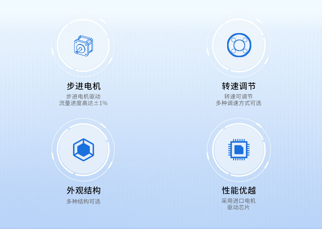1.步進(jìn)電機(jī)驅(qū)動(dòng),流量精度高達(dá)±1%