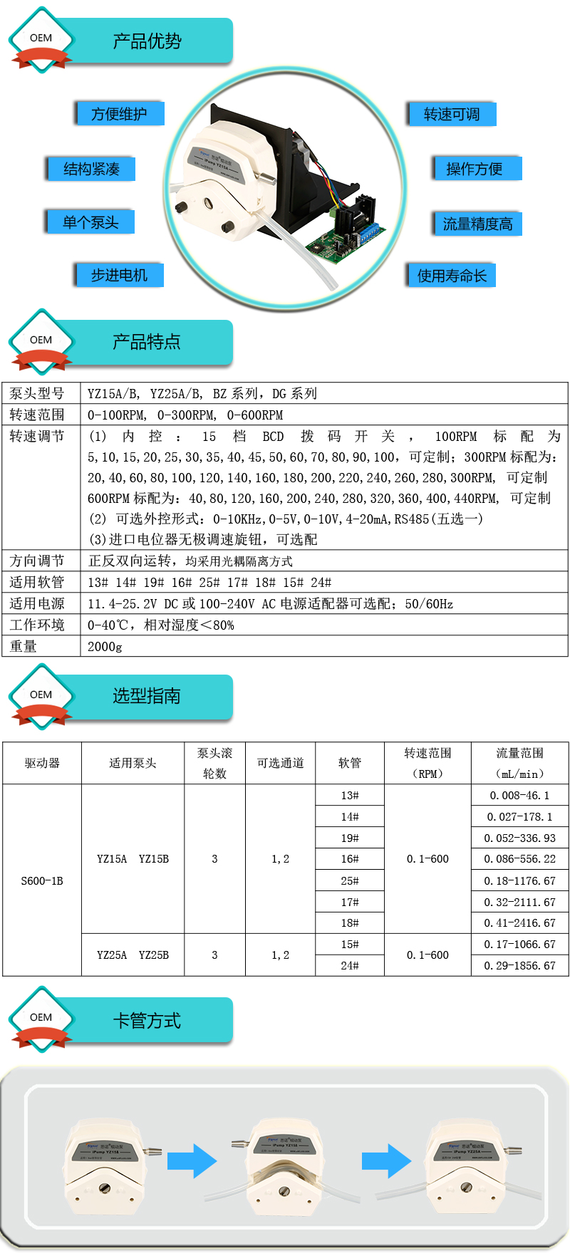 ? ? ?1.流量范圍:0.008-2416.67mL/min ? ? ?2.步進電機驅動,流量精度高達±1% ? ? ?3.轉速可調節,多種調速方式可選 ? ? ?4.多種結構可選 ? ? ?5.采用進口電機驅動芯片,性能優越 ? ? ?6.線路板全部三防漆處理,防腐、防潮?