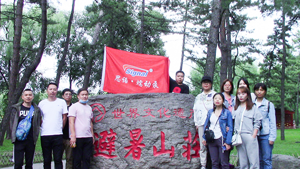 藍天白云,笑容洋溢 ,做在大巴車上同事們有說有笑,看著一路的風景,6個小時的車程,很快到達了避暑山莊。思諾團隊一起來到避暑山莊正門口拍照留念。